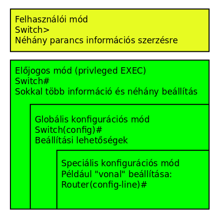 A Cisco IOS a következő módokban használható: