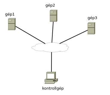 A példa kedvéért, adott egy 4 gépből álló hálózat. Egyik közülük a kontrollgép, ahol meghatározzuk majd milyen állapotba kerüljön a másik 3 célgép. A célgépeket lehetnek magyarosan gépek vagy csomópontok, angolosan hostok vagy node-ok.